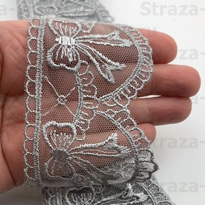 > TK95-789-01 Кружево на сетке (серый) шир. 6см=1 м